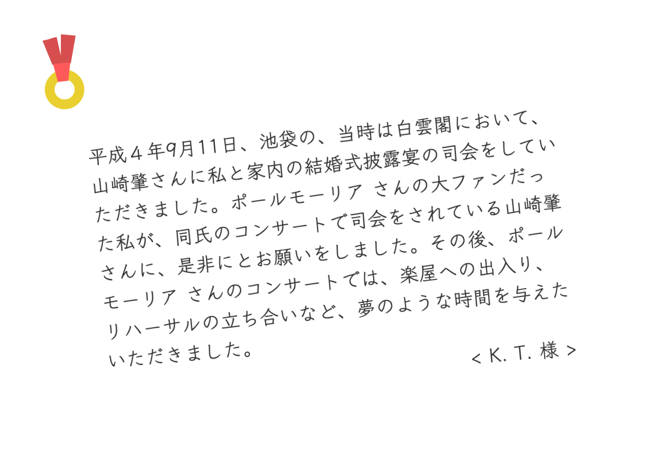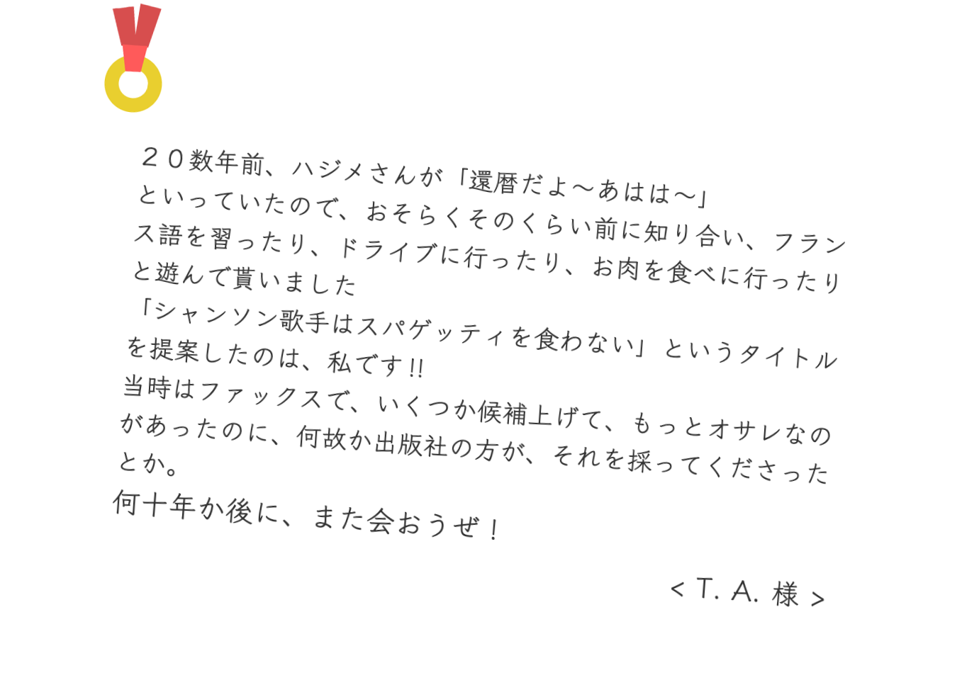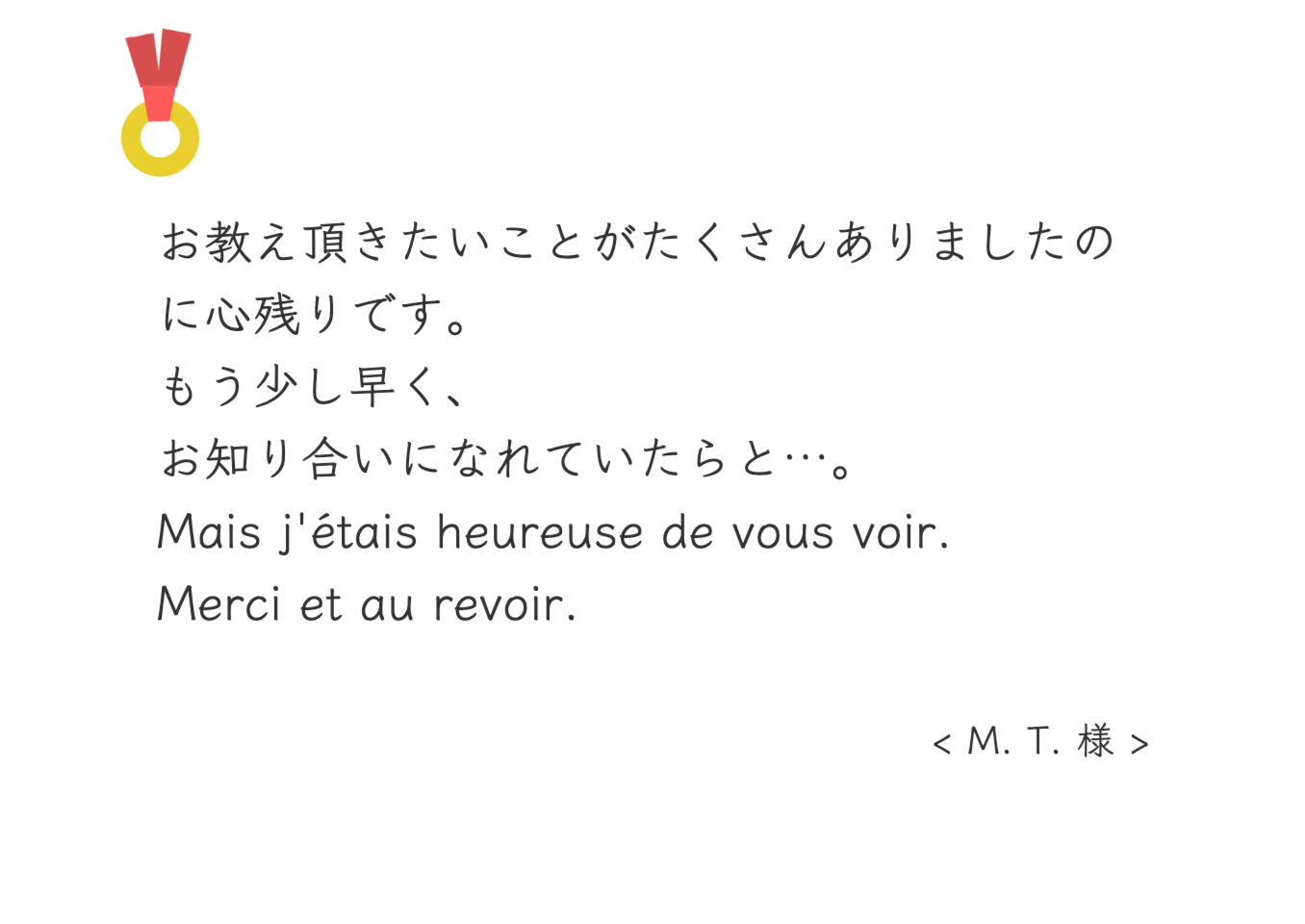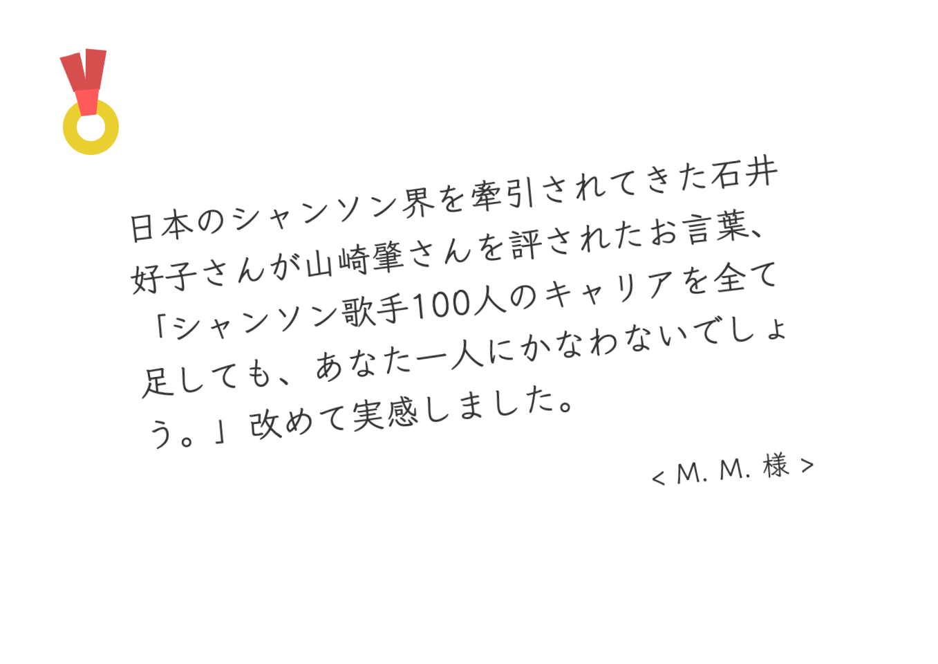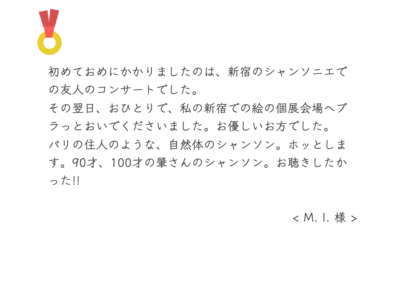 シャンソン歌手であり、コンサートの司会者であり、そしてシャンソン教室の先生であった山崎肇さんを、参加していただいたみなさんで振り返り、思い出を共有することができたのではないかと思います。