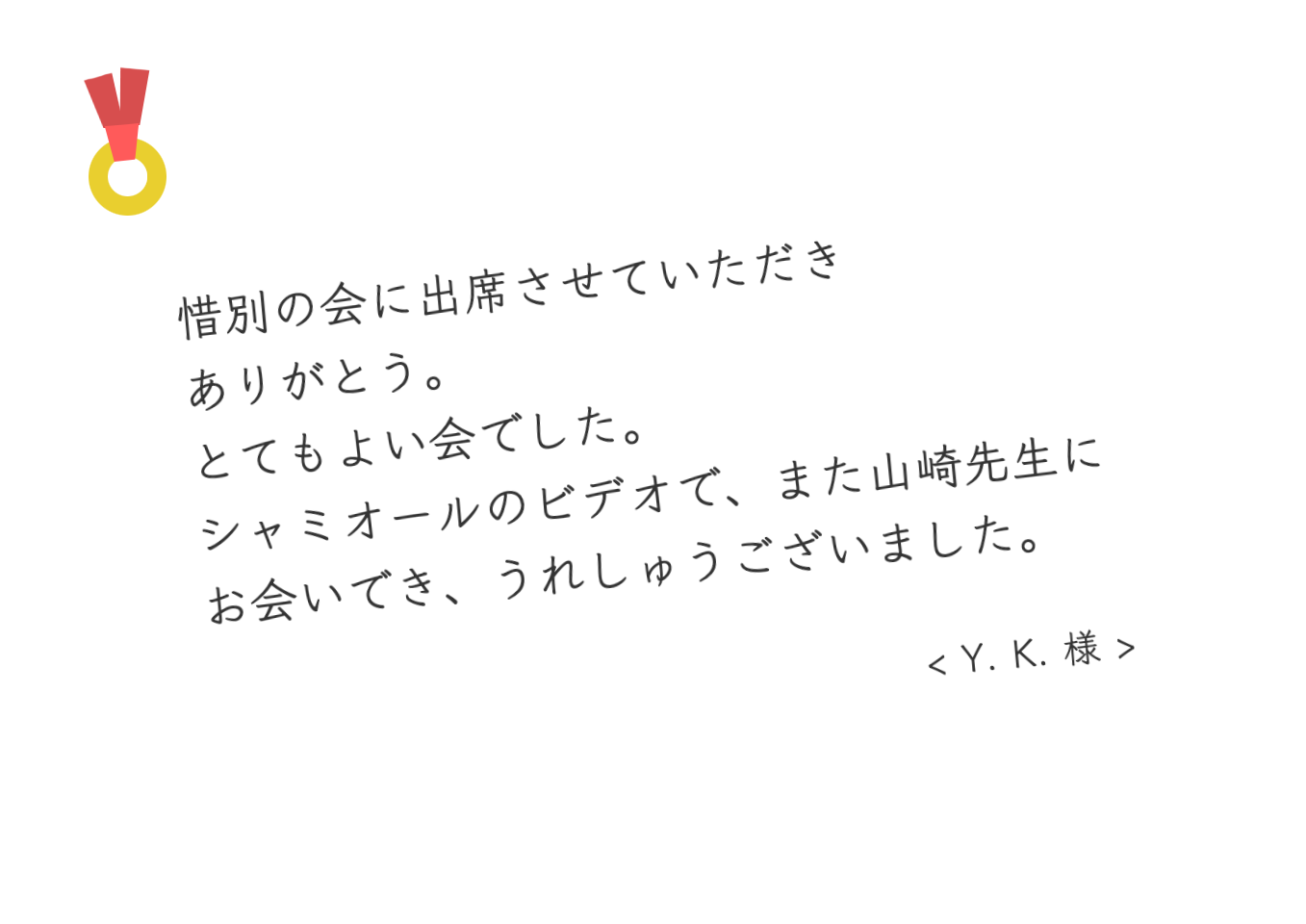 惜別の会で皆様から寄せられたメッセージを、山崎 肇 さんのお写真とともにご覧ください。